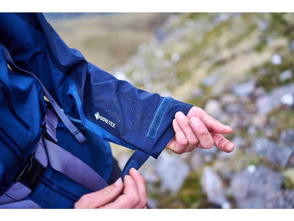 - 3-vrstvý GORE-TEX ePE o síle vláken 75D ošetřený voděodolnou DWR úpravou bez obsahu PFC, membrána ePE neobsahuje PFC a lícová látka je recyklovaná - nízká uhlíková stopa.