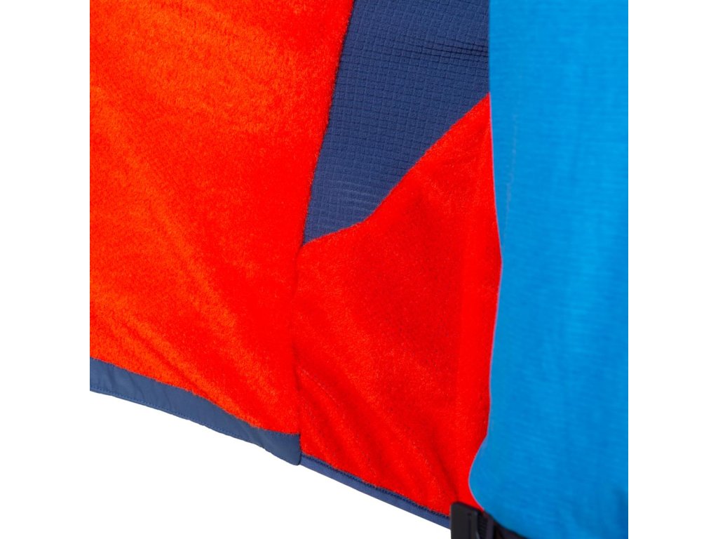 - Anatomicky tvarována kapuce – fleece panely na vrchu, aby seděla pod přilbu.