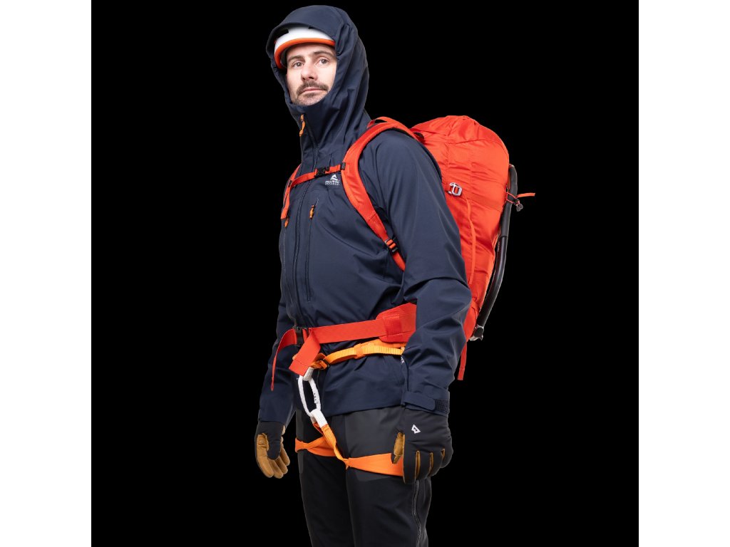 Je ta nejpropracovanější kapuce z nabídky Mountain Equipment. Je dostatečně veliká, aby komfortně seděla a dokonale pokryla hlavu i s přilbou. Nebudeš mít problém dokonce ani v kombinaci helma, péřovka, hardshellová bunda.