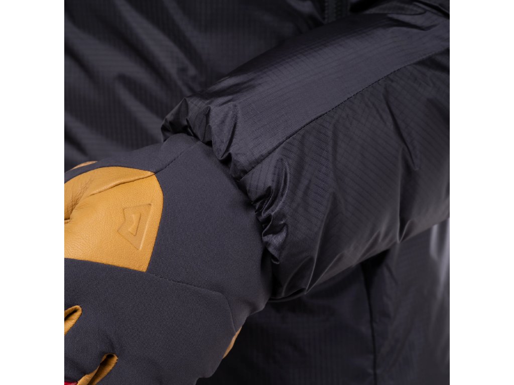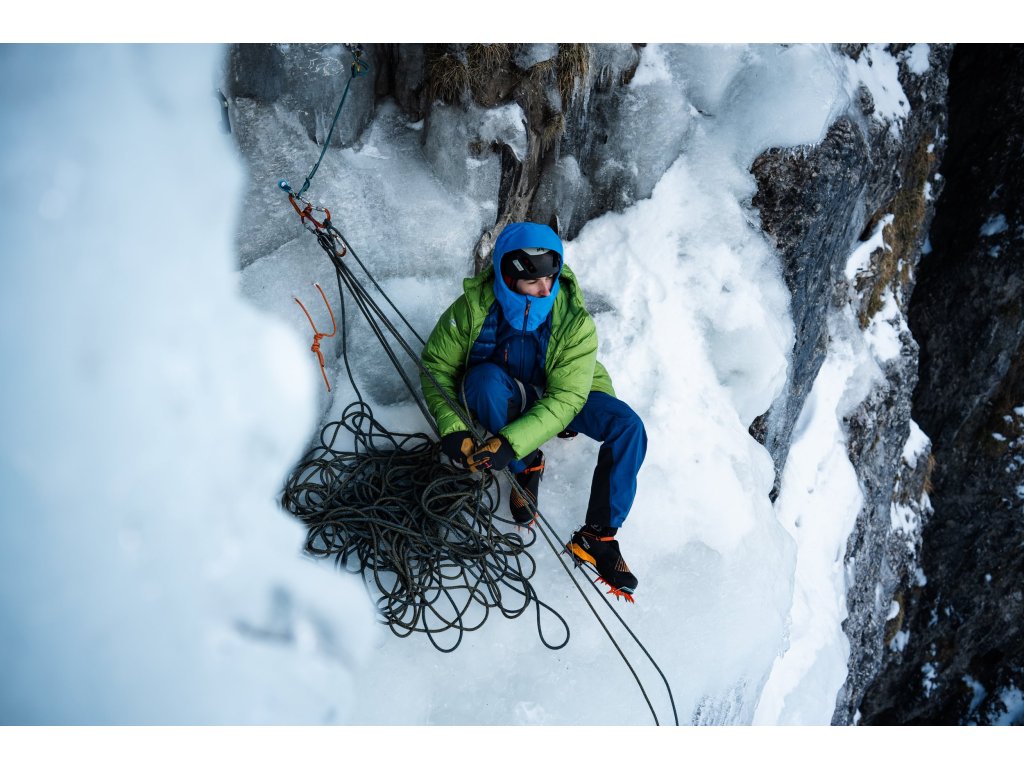- Dvoucestný YKK® zip podložený vnitřní péřovou légou pro minimální únik tepla a patentkou na spodu - Při jištění si spodní část bundy rozepneš a pod jistítkem pojistíš patentkou. Bunda ti tak nebude překážet při práci s lanem.
