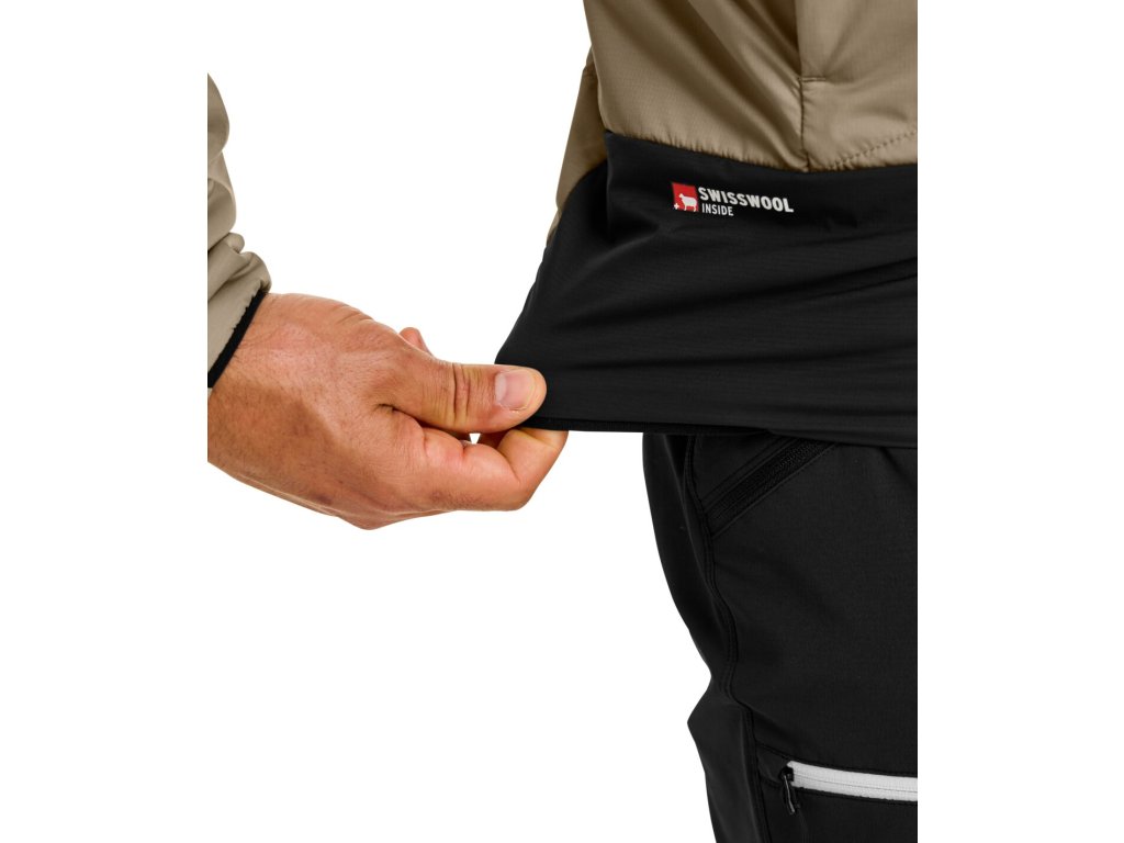 SWISSWOOL® je komfortní izolace zhotovená z pásů švýcarské vlny. Ty jsou umístěny v jednotlivých panelech bundy, díky čemuž drží na svém místě a neposunují se. Tato vlněná izolace je ideální na aktivní pohyb, protože vlna absorbuje až 35 % vlhkosti do svého jádra, takže i při vysoké fyzické aktivitě máš pocit sucha. Navíc při porovnání se syntetickým izolačním materiálem degraduje jen zanedbatelně a zachovává si své vlastnosti po mnoho let.