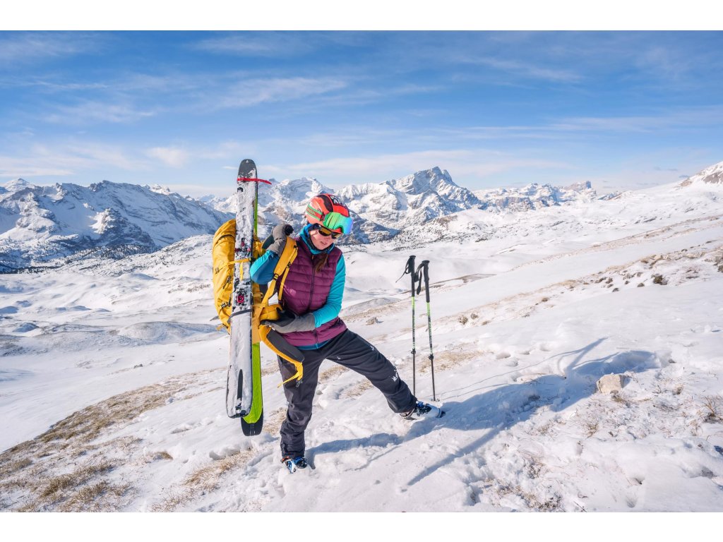 - Péřovou vestu sbalíš do vlastní kapsy a pomocí dvou poutek připneš karabinou na sedák.