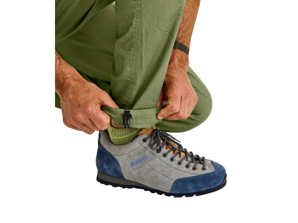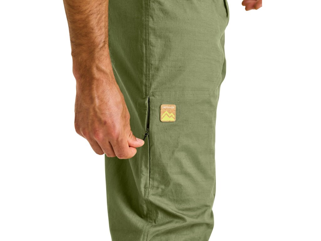 Tyto lehké lezecké kalhoty ze směsi přírodních materiálů z organické bavlny a konopí vypěstovaných bez použití pesticidů jsou mimořádně pohodlné a zároveň odolné a mají dlouhou životnost. Mají volný střih, anatomicky tvarovanou oblast kolen a zúžené manžety kotníků pro sportovní pohyby.