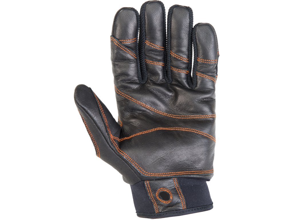 Lehké kožené rukavice, jejichž extrémně pohodlný, ergonomický střih umožňuje dobré používání prstů. Vyvinuty pro jištění, slaňování a práci s lanem obecně. Dvojitá tloušťka přírodní kůže na dlani a mezi palcem a ukazováčkem. Zesílená kožená vrchní strana rukavice s elastickými vložkami je odolná proti oděru. Ergonomický neoprenový pásek na zápěstí se zapínáním na suchý zip a otvorem pro karabinu (na připnutí na sedák).