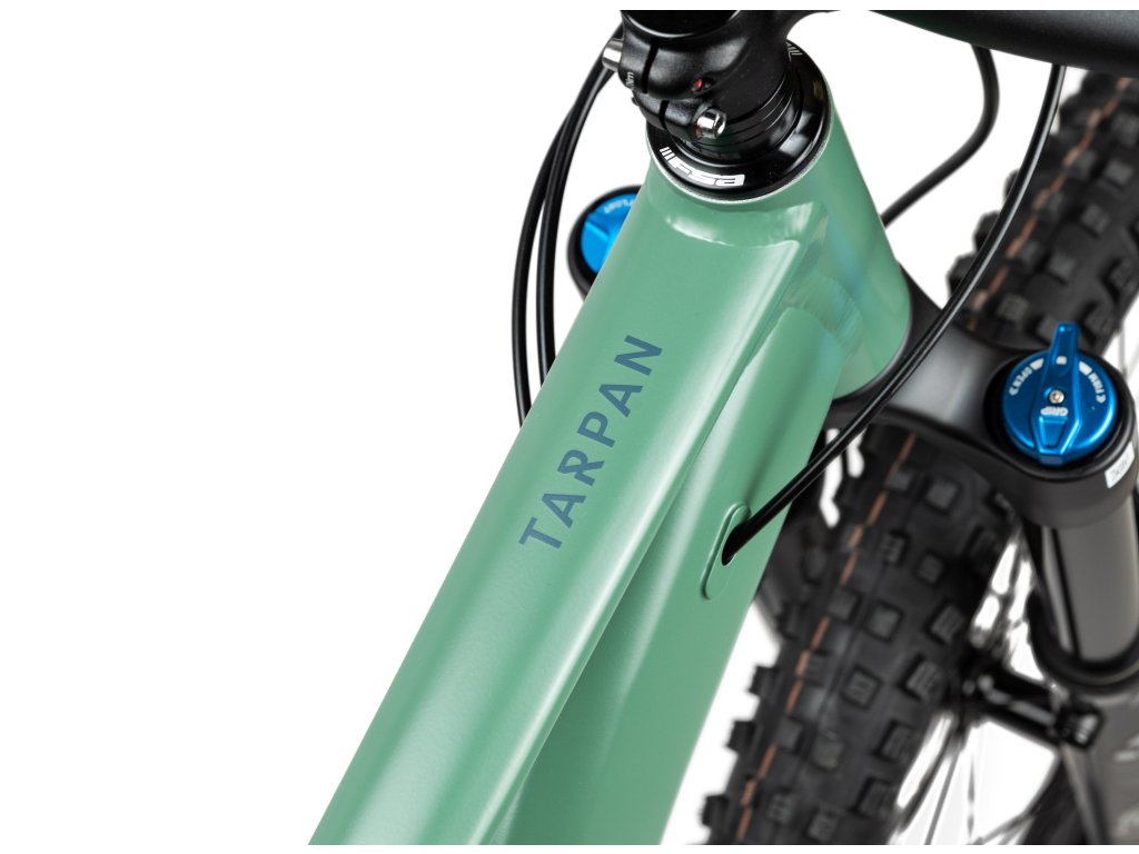 I když dáš na dopadu hranu, tenhle rám to určitě vydrží. Je dělaný z kvalitního zeslabovaného hliníku, má čtyřčepovou konstrukci pro uchycení tlumiče a zdvih 140 mm. Úhel hlavového složení je 64,5 stupně což napomáhá bezstarostnému vedení kola po trailu.