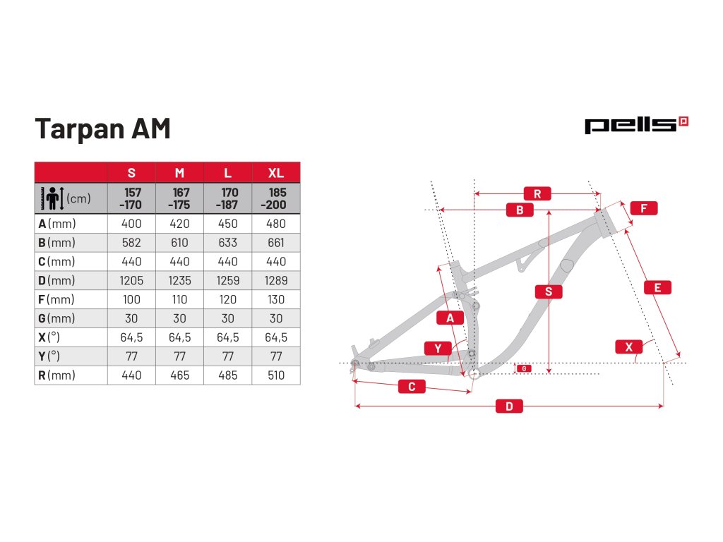 | Rám: | PELLS Tarpan All Mountain Alloy 140 mm Travel |