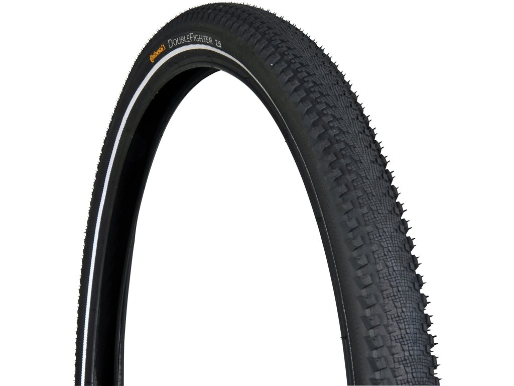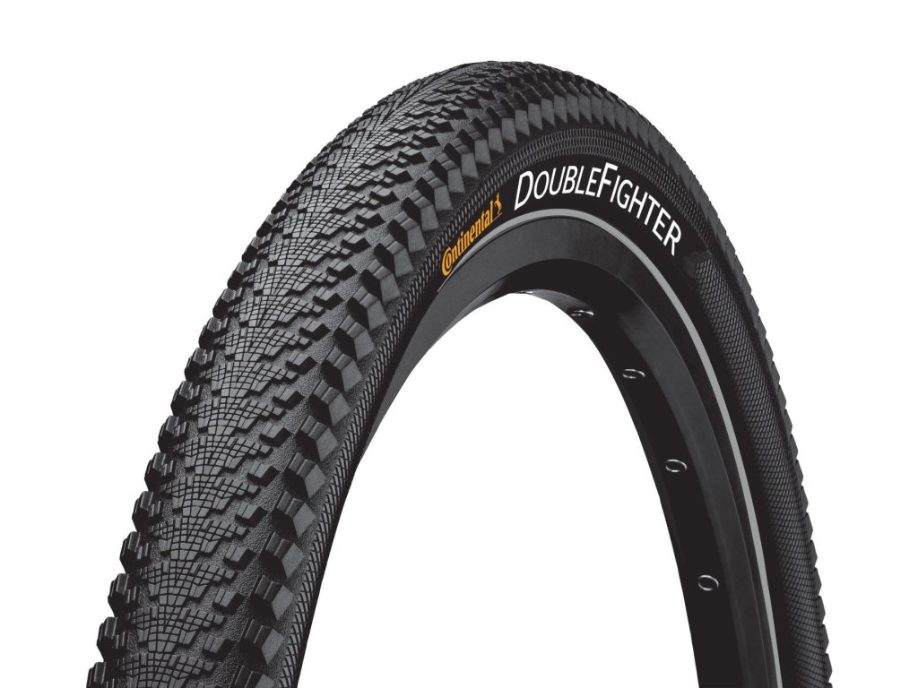 Continental Double Fighter III je plášť s jemným vzorkem, který se hladce a tiše odvaluje po asfaltu. Provedení s reflexním pruhem na bocích pláště. Díky robustním gumovým bočnicím se nemusí obávat ani štěrkových a polních cest.