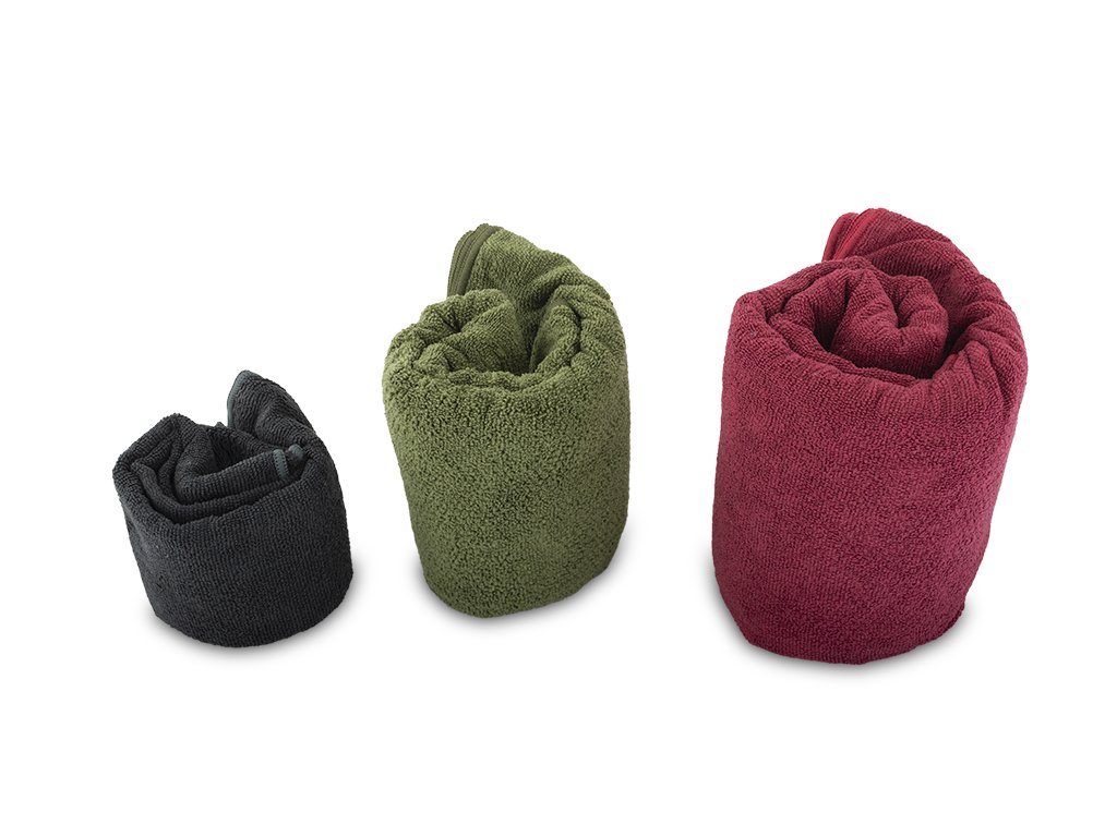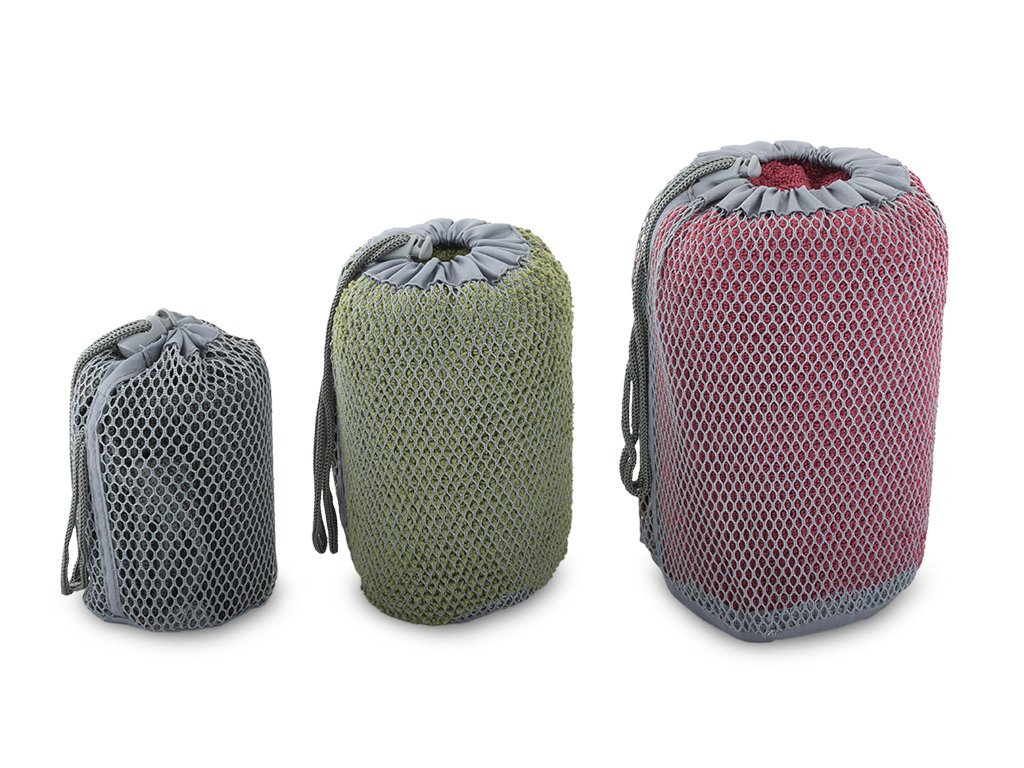 Díky poutku se sponou jej lze připevnit na batoh a sušit za pochodu.