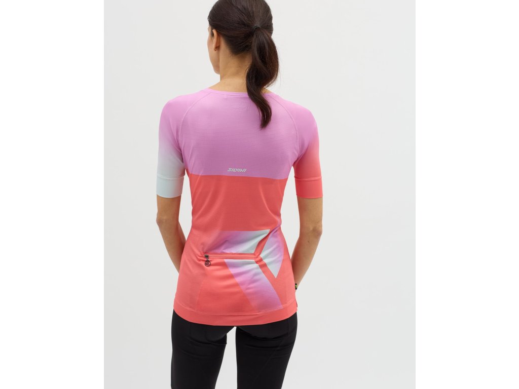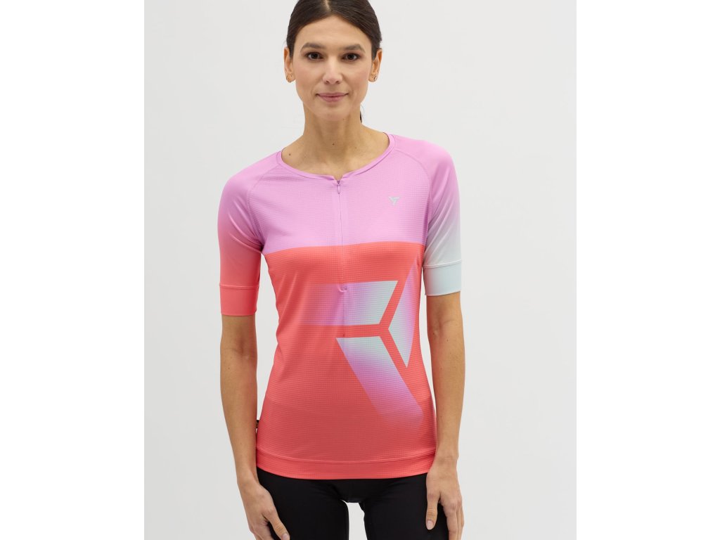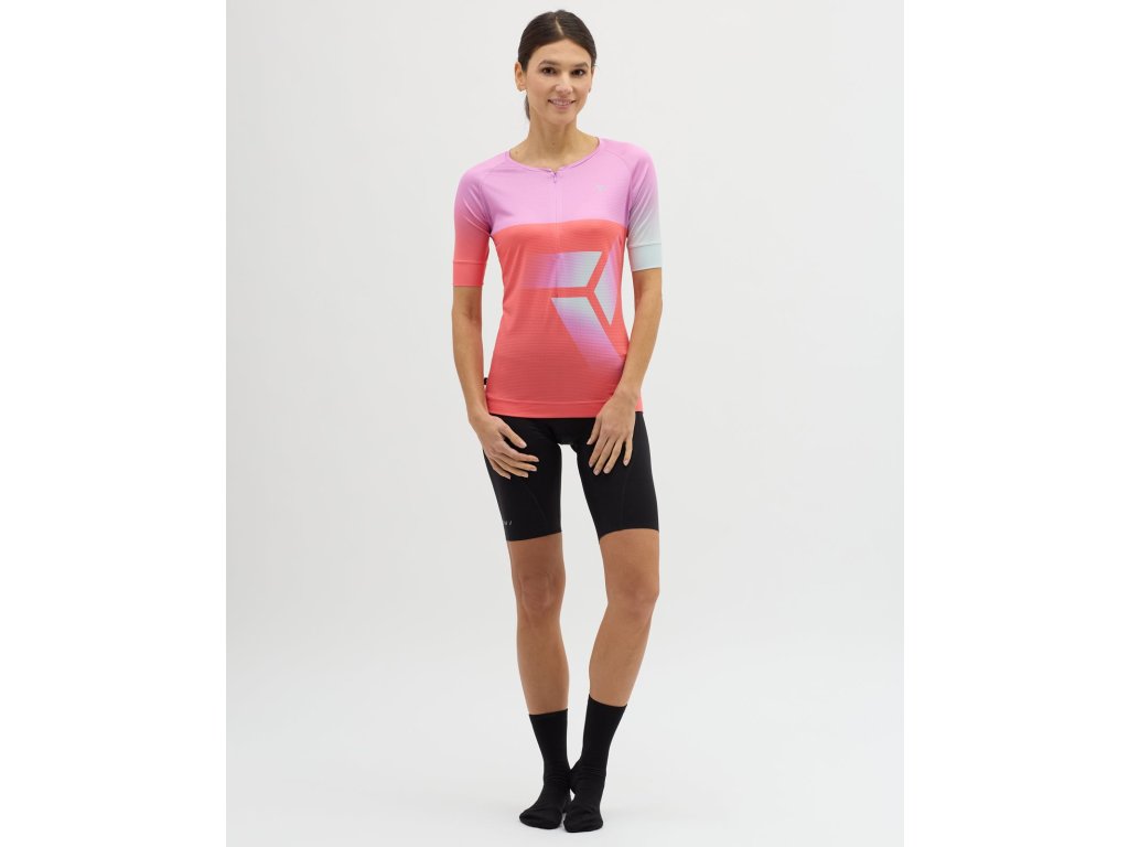 Dámský elastický dres volného střihu s prodlouženým zadním dílem. Je vyroben z lehkého a prodyšného Light MESH materiálu. V přední části má krátký skrytý zip a na zádech je malá zipová kapsička.Doplňkové parametry