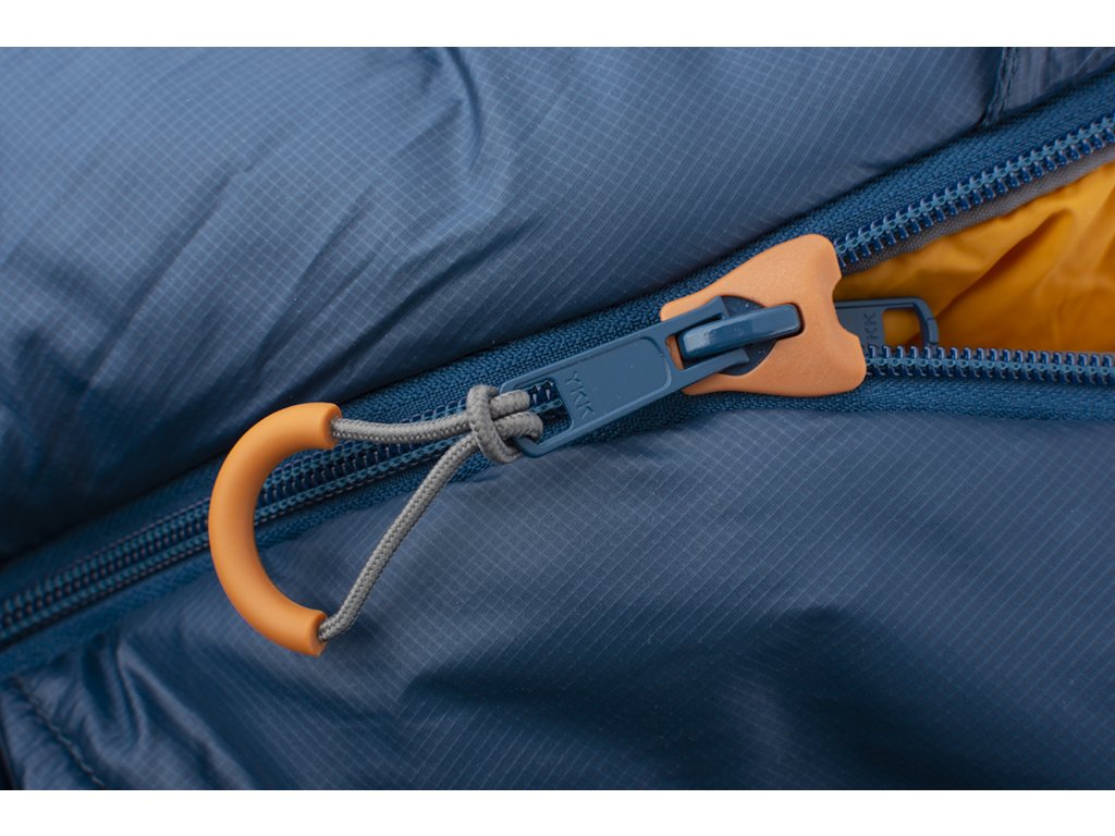 Protože víme, že pro spánek je zima nepřítelem číslo jedna, bojujeme proti ní všemi možnými prostředky. Zip je samozřejmě oboustranný a lze jej zapínat jak zevnitř tak i zvenku.Navíc je z vnitřní strany opatřen légou, která účinně zabraňuje tomu, aby skrze něj profukoval vzduch. Ta je navíc vycpaná, takže případné nalehnutí na zip by nevzbudilo ani princeznu na hrášku. Hned za otvorem pro hlavu je ramenní límec. Ten po stažení velice dobře zadržuje teplo uvnitř spacáku a zároveň zabraňuje tomu, aby do něj uživatel nadýchal páru z úst.