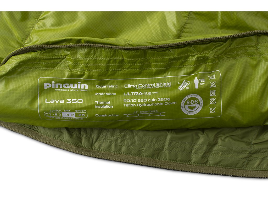 - Kachní peří o plnivosti 650 Cuin v poměru 90/10 se postará o výborný loft a tím pádem skvělou sbalitelnost při zachování výborného tepelného komfortu až do -4°C.
