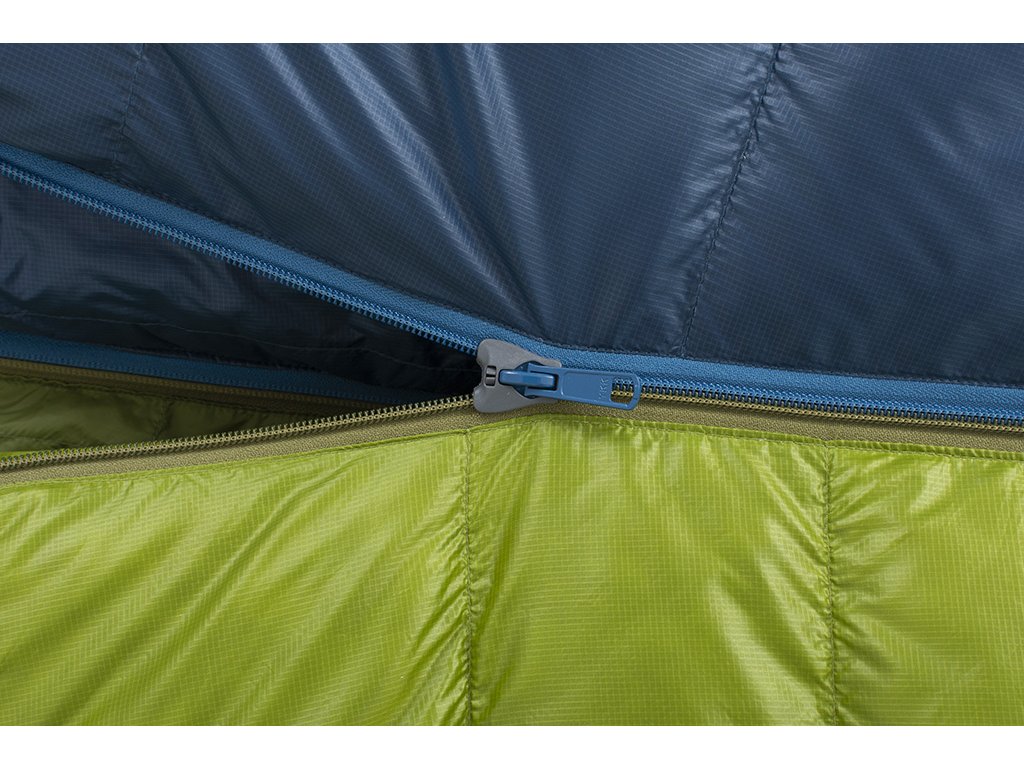 - Anatomická konstrukce pro zvýšení účinnosti spacáku. YKK zip je vybaven polstrovanou légou zamezující úniku tepla skrze zip. Jezdec je navíc vybaven ochranou proti zadrhávání.