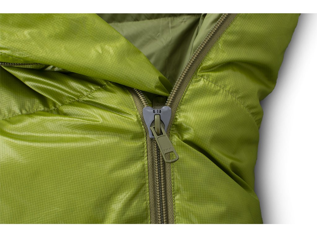 - Anatomická konstrukce pro zvýšení účinnosti spacáku. YKK zip je vybaven polstrovanou légou zamezující úniku tepla skrze zip. Jezdec je navíc vybaven ochranou proti zadrhávání.