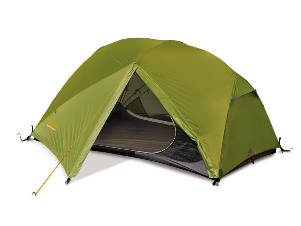 Ultralehký prostorný stan pro dvě osoby se dvěma vchody a předsíňkami.