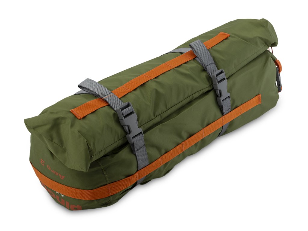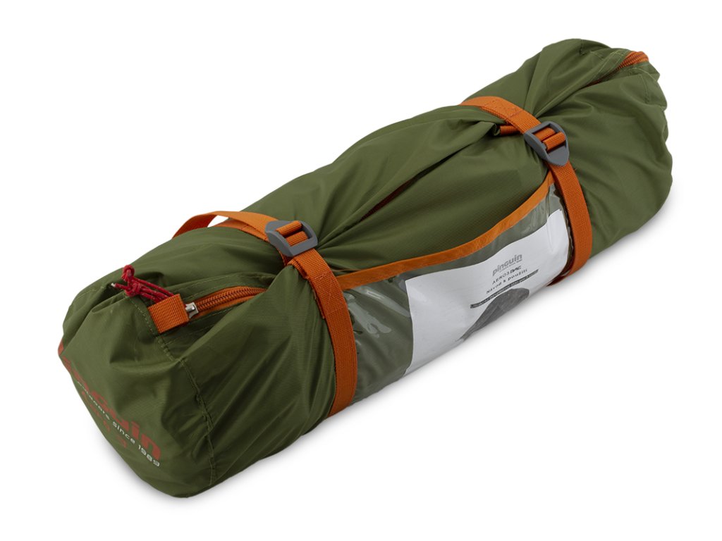 Vnitřní stan zavěsíme háčky na duralovou konstrukci. Tropiko přetáhneme přes konstrukci, poté přichytíme suché zipy na spodní straně tropika k prutům. Sepneme spony a tropiko vypneme. Stan ukotvíme kolíky a šňůrami.