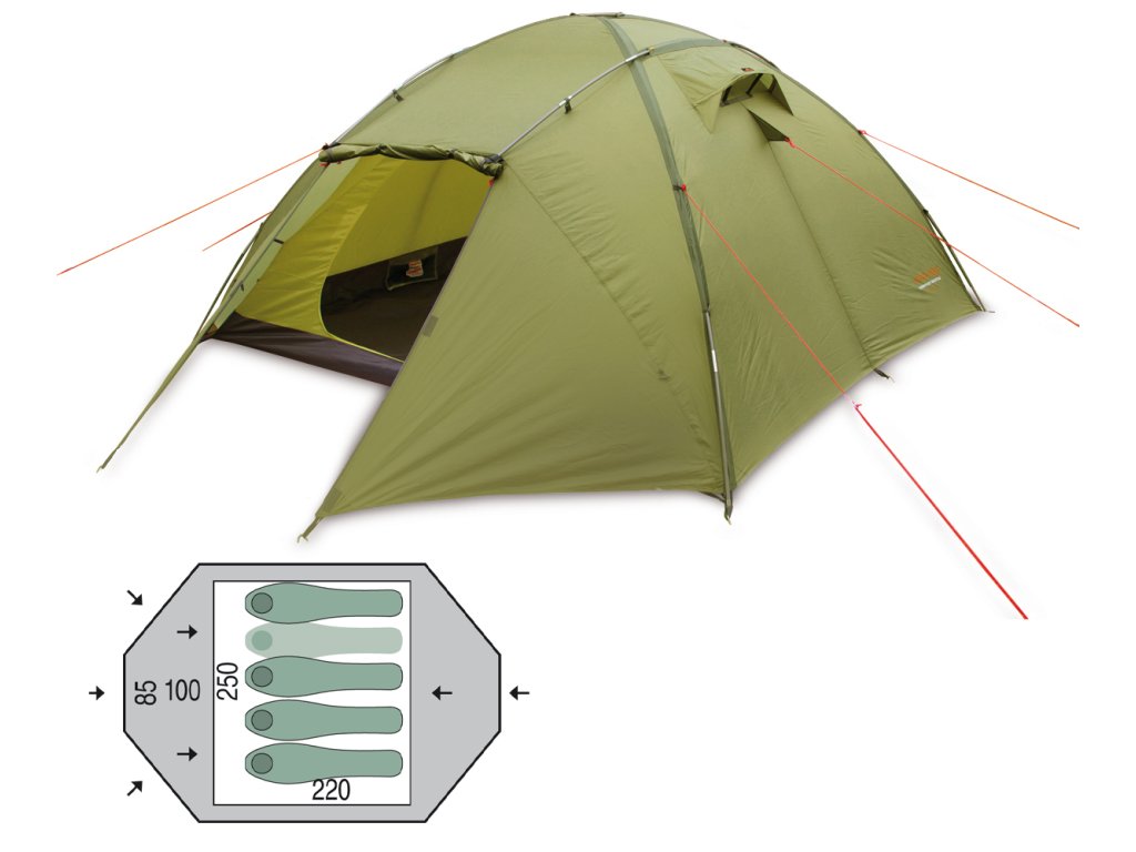Stan je dvouplášťový a skládá se z vnitřního stanu a z vnějšího pláště – tropika. Vnitřní stan má půdorys tvaru obdélníku se dvěma vchody na jeho delších stranách. Vnější stan je osmiúhelník, má taktéž dva vchody, ve kterých jsou dvě předsíňky, vhodné například k uložení zavazadel nebo vaření v případě nepříznivého počasí.