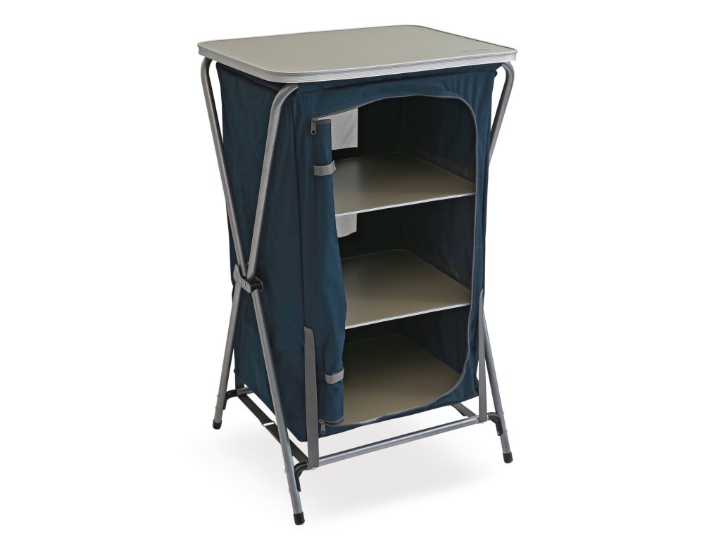 Dvířka na zip lze po otevření uchytit páskami se suchým zipem. Část zadní stěny je ze síťoviny, takže dovnitř proniká denní světlo, což vám usnadní orientaci. Celou skříň lze složit do přepravního obalu o rozměrech 60 x 52 x 15 cm.