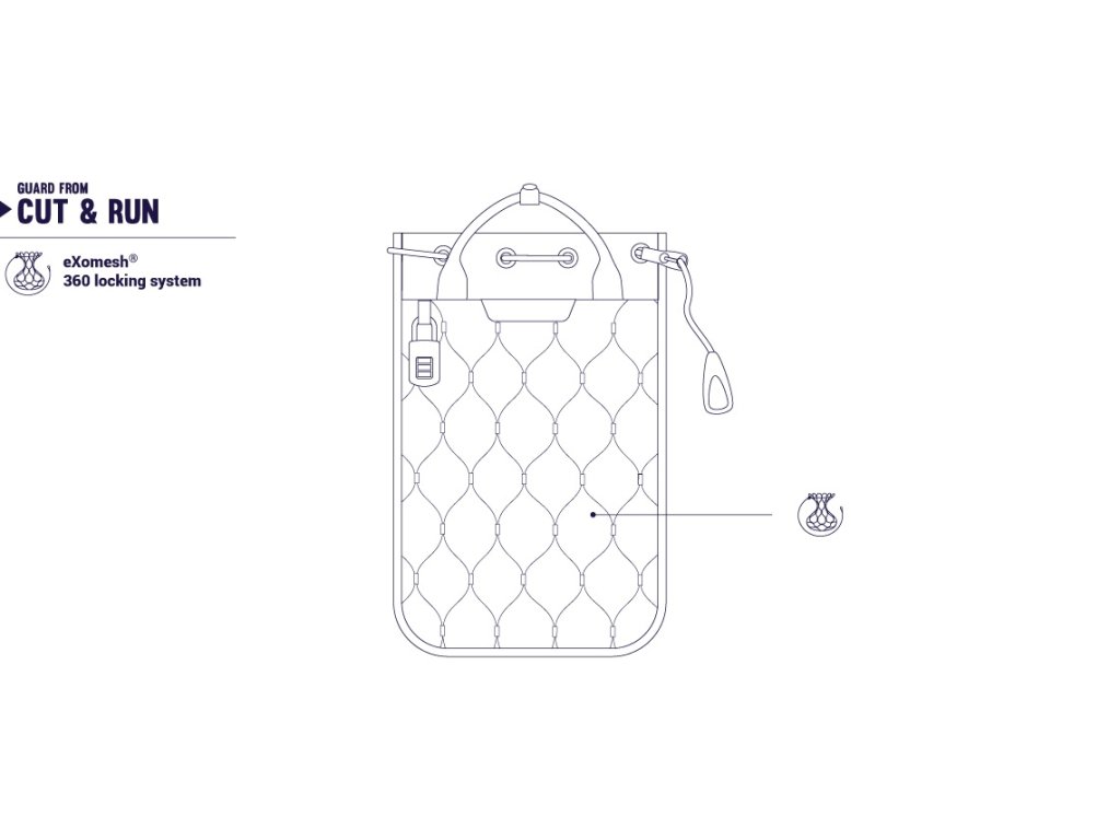 Cestovní "sejf", který spolehlivě ochrání váš 10" tablet, brýle a další cennosti. Tělo je chráněno proti proříznutí ocelovou pavučinou eXomesh. Pevným ocelovým lankem ho přiděláte třeba k zábradlí a můžete vyrazit do oceánu. Číselný zámek s TSA certifikací je v ceně. Materiál: 900D polyester. Rozměry: 34 x 22,5 x 1,5 cm. Objem 3L. Hmotnost: 330 g.Doplňkové parametry