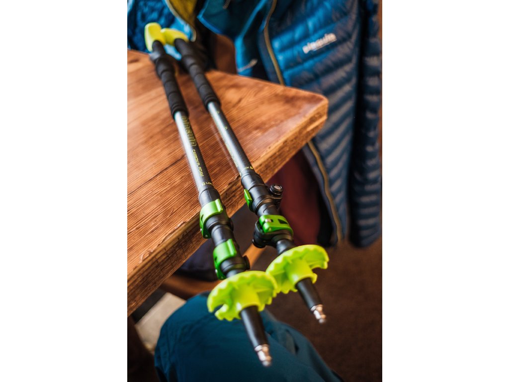 K většímu pohodlí a bezpečnosti při používání holí přispívají také nastavitelná poutka na zápěstí ruky. Délku holí je možné velmi snadno, rychle a bezpečně nastavit pomocí dvou zámků Fast Lock s duralovými páčkami na 63 až 135 cm. Snadnému nastavení přispívají i rysky na spodních segmentech holí.