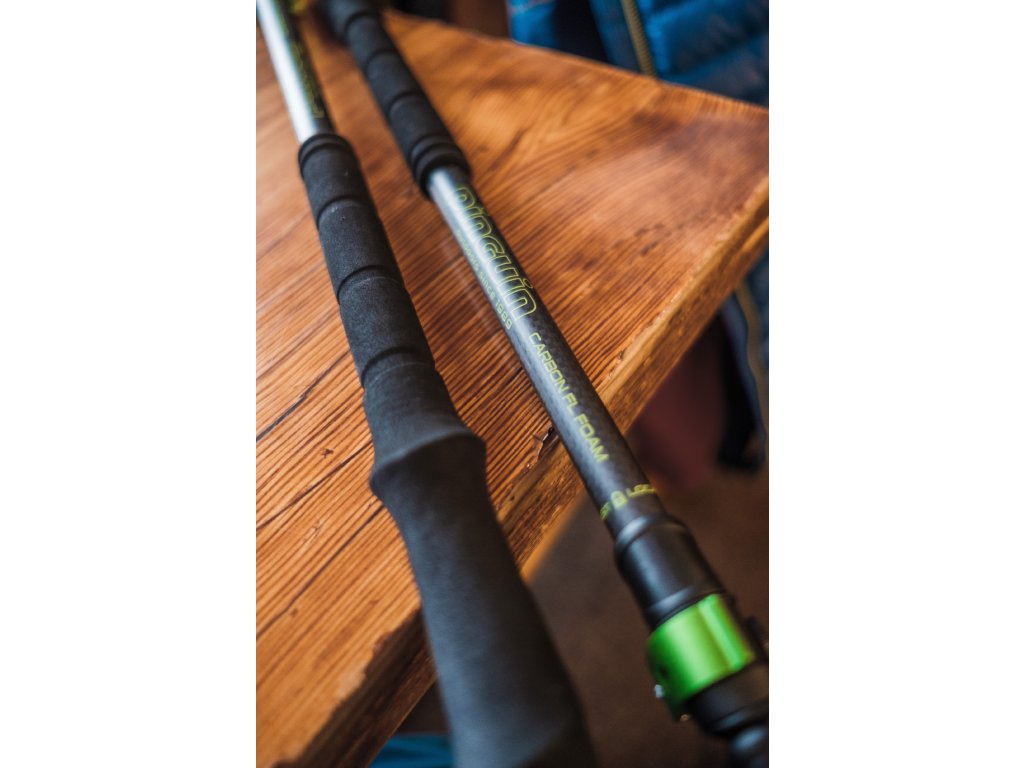Horní segment holí Pinguin Carbon FL Foam je potažen karbonovou folií, která zvyšuje jejich tuhost a dodává jim nezaměnitelný futuristický vzhled.