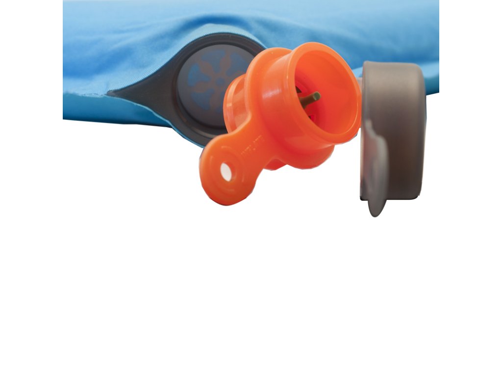 VENTIL REVERSE Ovládá se jednoduše bez šroubování a obsahuje membránu proti zpětnému unikání vzduchu při nafukování. Otočením uzávěru membrána zabraňuje vnikání vzduchu při vyfukování. Vrchní čepička pomáhá k 100% těsnění a zároveň udržuje uzávěr čistý. Větší průměr umožňuje až o 50% rychlejší nafouknutí a vyfouknutí karimatky.