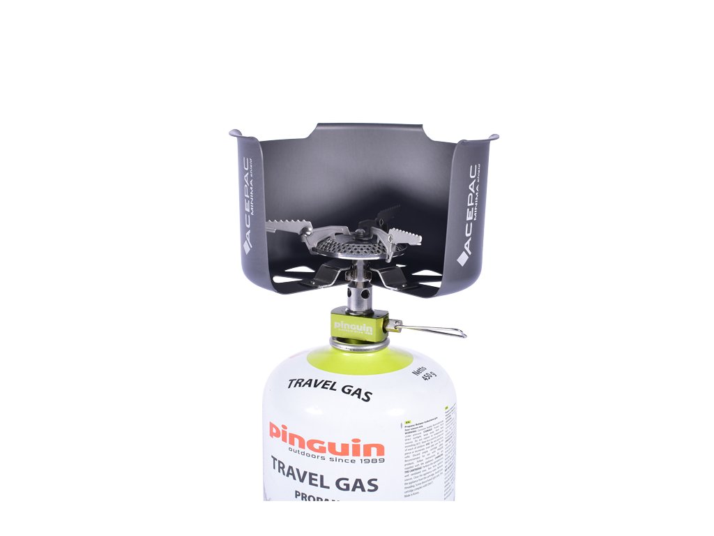 Závětří z tvrdě anodizovaného hliníku, které zvyšuje efektivitu vaření za nepříznivého počasí.